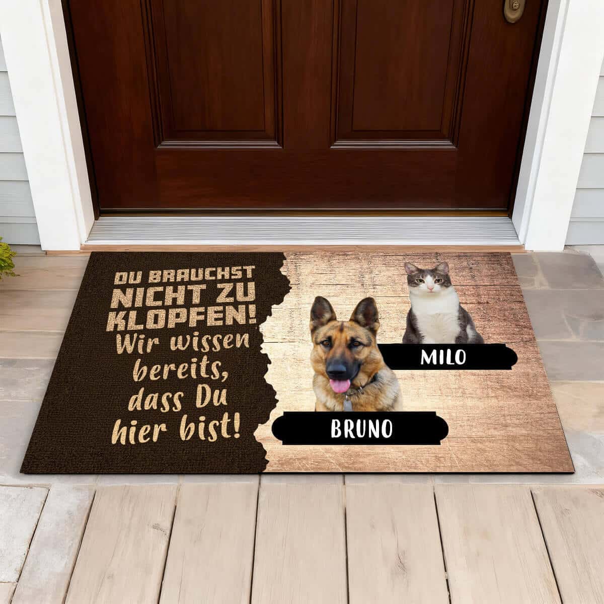 Begrüße Deine Gäste mit einer Fußmatte, die das niedliche Gesicht Deines pelzigen Freundes zeigt!